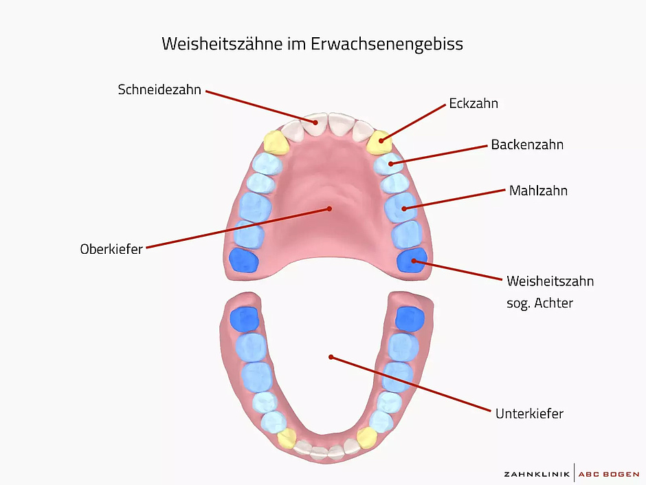 Die Weisheitszähne haben wir von unseren urzeitlichen Vorfahren geerbt, für welche die zusätzlichen Zähne lebensnotwendige Beißwerkzeuge zum Zerkauen von größtenteils unbearbeiteter Nahrung waren. Jeder Quadrant im Mundraum umfasst insgesamt sieben Zähne: Weil sich je ein Weisheitszahn dazugesellt, werden Weisheitszähne auch »Achter« genannt.