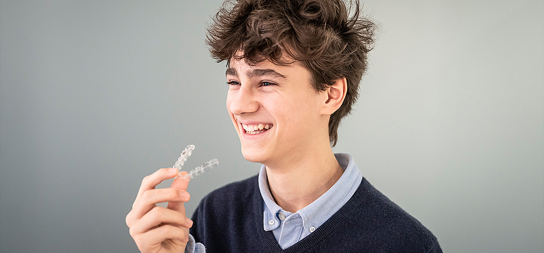 Die Therapie von Zahnfehlstellungen mit dem Invisalign-System ist übrigens für Teenager genauso geeignet wie für Erwachsene – und zwar bis ins hohe Alter. Die Altersuntergrenze bildet der Ausfall sämtlicher Milchzähne. Die neueste Version »Invisalign First« kann schon bei Durchbruch der ersten bleibenden Schneidezähne angewendet werden: Für Kinder eignet sich »Invisalign First«, für Jugendliche wurde »Invisalign Teen« entwickelt.