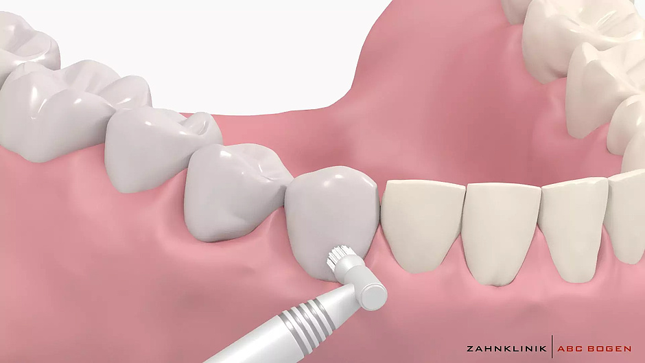 Je glatter die Oberfläche der Zähne ist, desto schwerer kann sich dort neuer Belag bilden. Deshalb werden die Zahnoberflächen im Anschluss an die Entfernung von Plaque und Verfärbungen gründlich poliert.