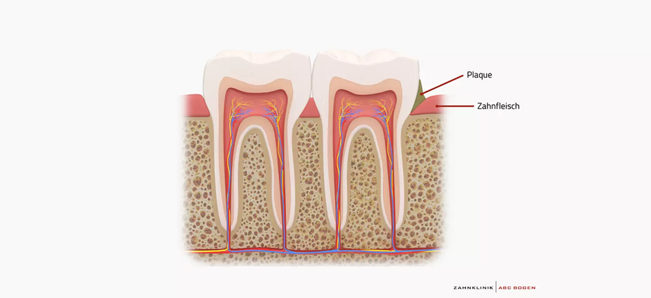 Zudem kippt bei vermehrter Plaquebildung das Verhältnis der Bakterien im Mundraum. Die Zahl der säurebildenden Bakterien nimmt massiv zu, es entsteht Mundgeruch und gefährdet die Gesundheit Ihres gesamten Mundraumes. Das Zahnfleisch entzündet sich und steigert so das Risiko einer Parodontitis, infolgedessen sich der Knochen abbaut und im schlimmsten Fall zum Zahnverlust führt.