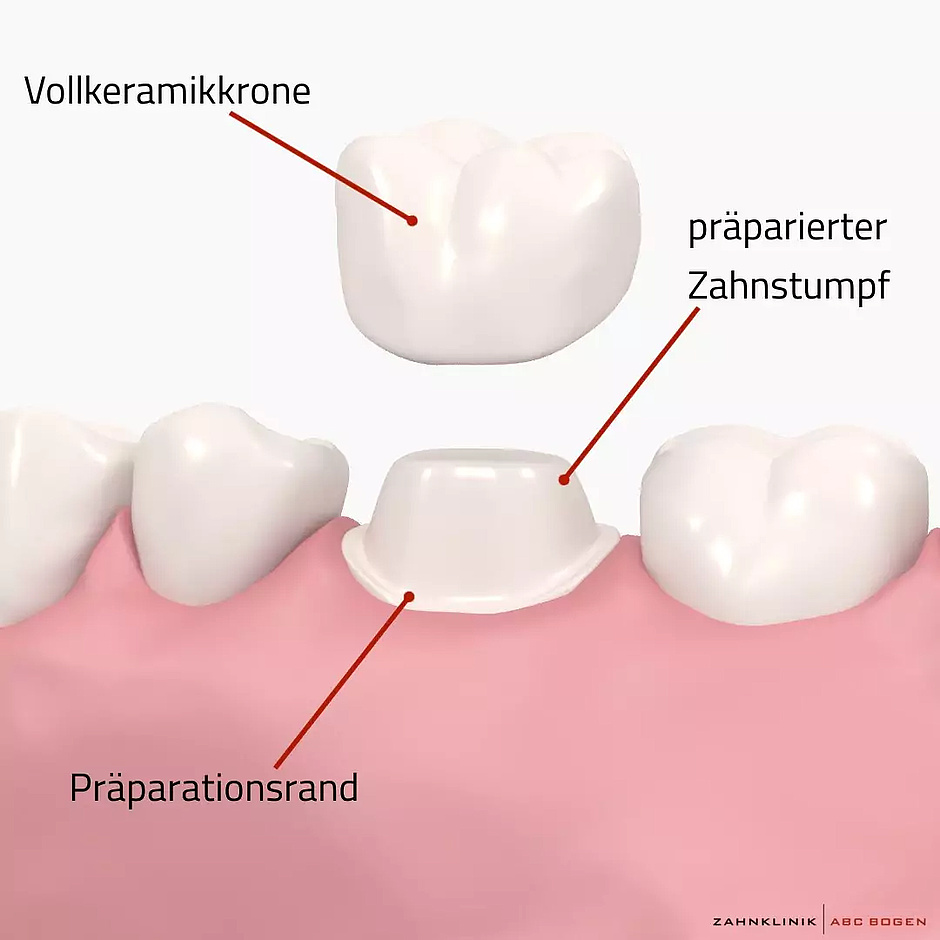 Wenn ein Zahn infolge von Karies oder von einer Verletzung nicht mehr mit einer Füllung oder einem Inlay therapierbar ist, bieten Zahnkronen eine gute Lösung. Wie eine künstliche Kappe verschließt eine Zahnkrone langfristig den beschädigten Zahn.