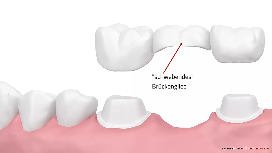 Um die Mundschleimhaut nicht zu reizen, wurde die sogenannte Schwebebrücke entwickelt. Ihr Brückenzwischenglied »schwebt« nämlich circa drei Millimeter über dem Zahnfleisch und berührt die Mundschleimhaut nicht. Die Schwebebrücke wird vor allem für die Versorgung im Unterkiefer verwandt und ist zudem besonders einfach zu reinigen.