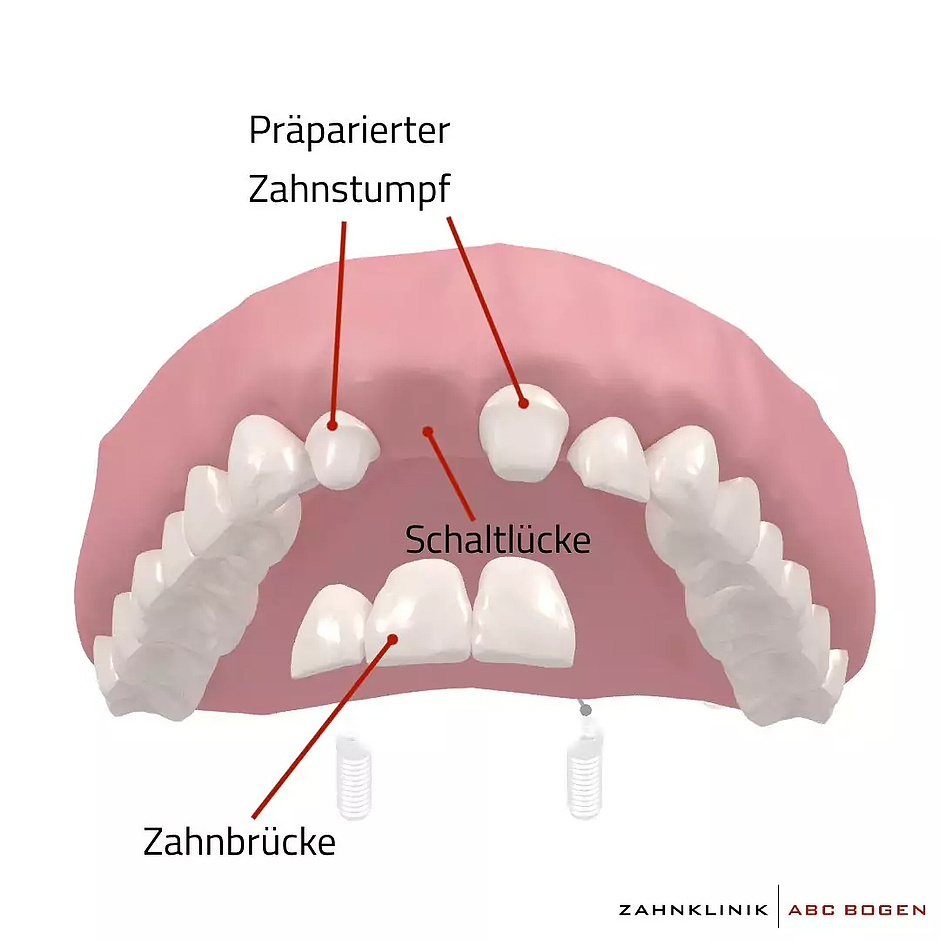 Eine Schaltbrücke schließt die Lücke zwischen zwei Zähnen und schützt sie davor, sich in die Richtung der Zahnlücke zu verschieben. Diese Form der Brücke besteht aus Brückenankern, welche auf den benachbarten und eigens dafür überkronten Zähnen als Brückenpfeiler befestigt werden. Zwischen ihnen liegt das sogenannte Brückenglied – ein Mittelstück, das die Zahnlücke schließt. Die von Lücken unterbrochene Zahnreihe wird im Zahnbogen von einer Schaltbrücke ideal rekonstruiert.