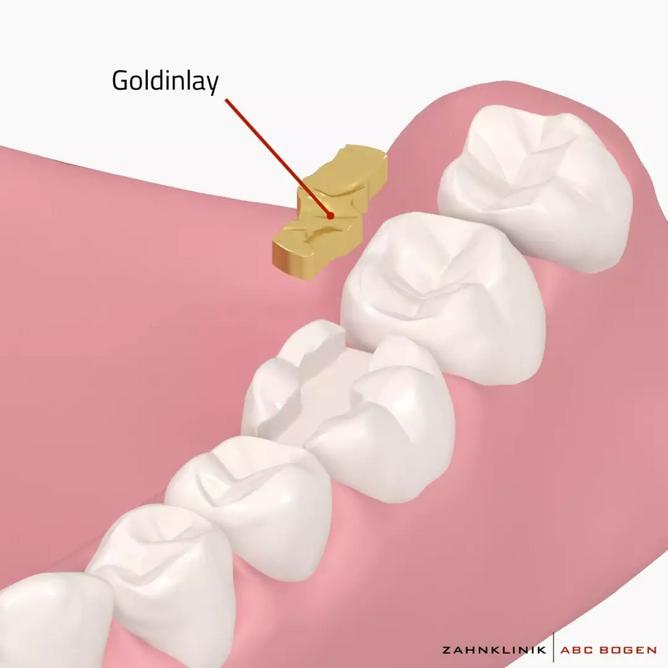 Zur Versorgung bei Karies im Bereich der Seitenzähne ist Gold ein solides Material für ein Inlay: Das Edelmetall hält nicht nur starke Kaubelastungen aus, es ist auch gleichzeitig weich genug, um den gegenüberliegenden Zahn durch Abrieb nicht zu beschädigen. Für das Edelmetall-Inlay kommt eine Goldlegierung zum Einsatz, für die Gold mit anderen Metallen gemischt wird. Befestigt werden Inlays aus Gold mit einem Zement, der speziell für die Zahnmedizin entwickelt wurde.