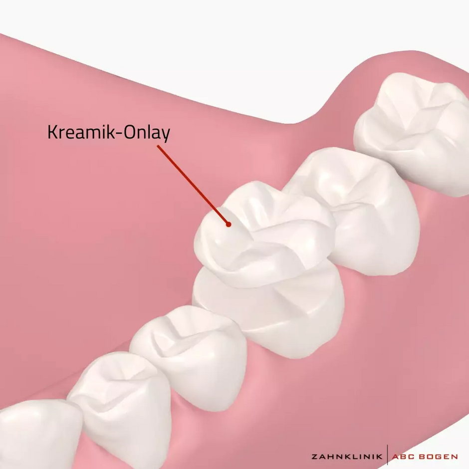 Anders als eine klassische Zahnfüllung wird ein Onlay für Sie immer individuell im Labor gefertigt. In der Praxis wird das erstellte Onlay schließlich auf die betroffene Stelle gesetzt, wo es die gesamte Fläche der natürlichen Zahnkrone bedeckt. Ist das Onlay auf dem geschädigten Zahn fixiert, schützt es die geschwächten Zahnwände und beugt Brüchen vor.