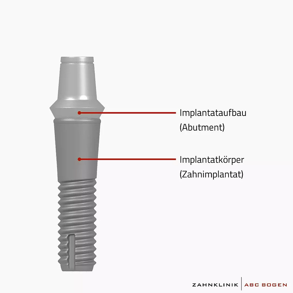 Der Implantataufbau, auch Abutment genannt, ist eine passgenaue Verbindung aus Titan oder Keramik, die den Implantatkörper und die Implantatkrone verbindet. Der Aufbau kann wegen seiner beidseitigen Anschlussteilen mit einem Adapter verglichen werden. Der Implantologe dreht das Unterteil in das Implantat hinein und befestigt anschließend den Zahnersatz – eine Krone, Brücke oder Prothese – auf dem Oberteil.