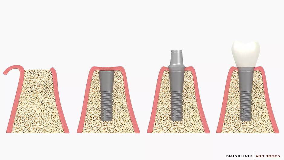 In wenigen Fällen kann die Implantation unmittelbar danach erfolgen. So werden Kiefer und vor allem Zahnfleisch erhalten, ein Abbau wird vermieden. Meistens dauert es nach der Zahnentfernung ungefähr sechs bis acht Wochen, bis eines oder mehrere Implantate folgen können.